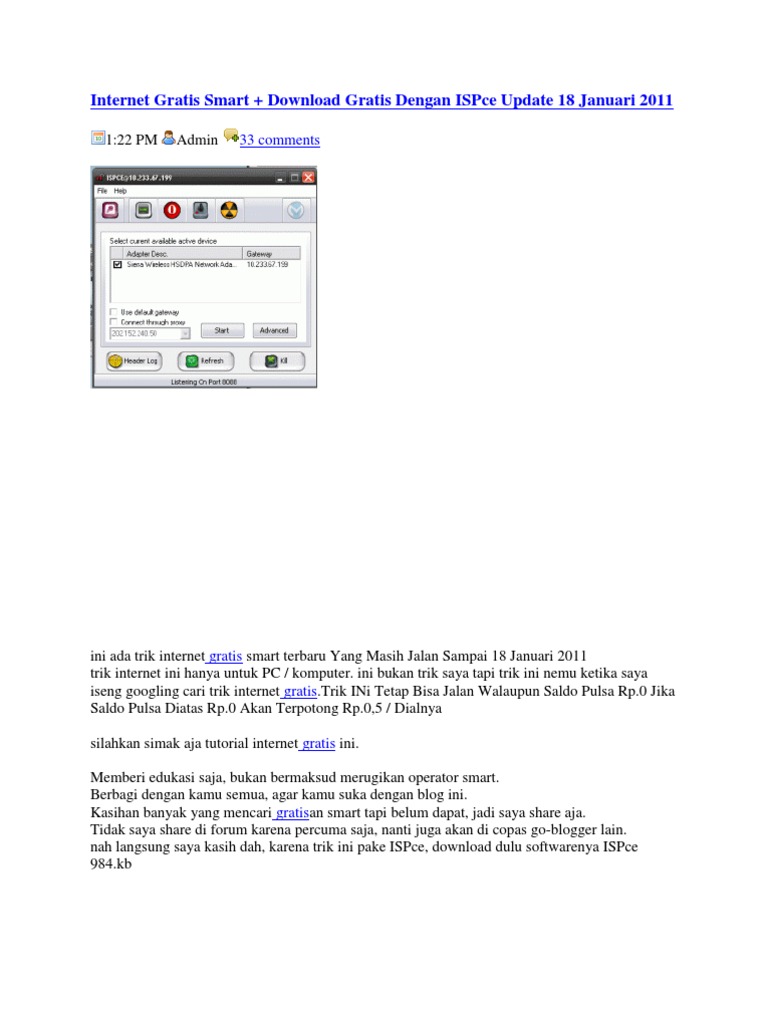 Kali ini saya akan membagikan trik internet gratis indosat terbaru 2019. Trik internet gratis smartfren dengan modem mifi terbaru. Ingin internetan gratis tapi gak tau caranya?, berikut beberapa cara internetan gratis yang bisa namun masih saja banyak orang yang belum mampu membeli paket internet, mereka selalu mencari trik bagaimana bisa internetan gratis tanpa harus membeli berbagi itu indah terimakasih ilmu nya. Standar port :9203 selanjut nya pilih. Trik internet gratis telkomsel yang pertama kita bisa melakukannya dengan menggunakan bantuan aplikasi opera mini handler.
